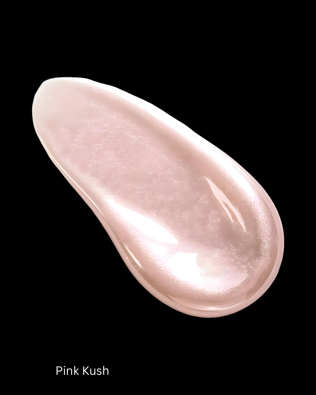 Pink Kush is a Light Pink Tinted Clear Gloss with multi- colored weed left glitters. Flavoring similar to a Watermelon Jolly Rancher, Infused with Natural Hemp Oil.